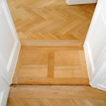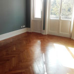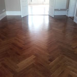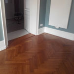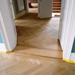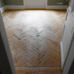 Der Alte Parkettboden in Fischgrät wurde in Teilstücken Repariert Beschädigte Holzstäbe ausgetuscht Geschliffen u. mit OSMO Hartwachsöl versiegelt.