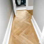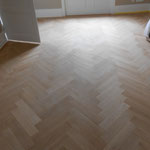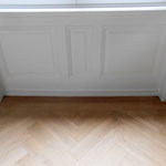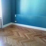 Verlegung in Fichgrätverband und einer Umlaufenden Friesausbildung die 100 mm Hohen Blerlinersockelleisten machen das Gesamtbild Perfekt.